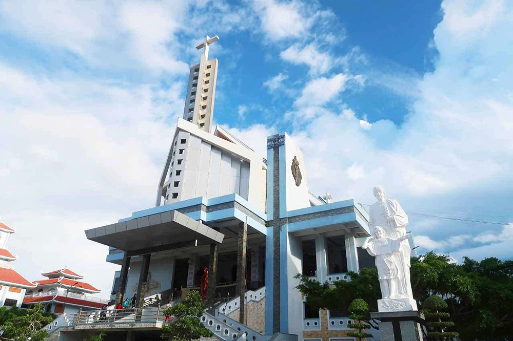 ba tháp chuông: một tháp ở giữa và hai tháp hai bên.